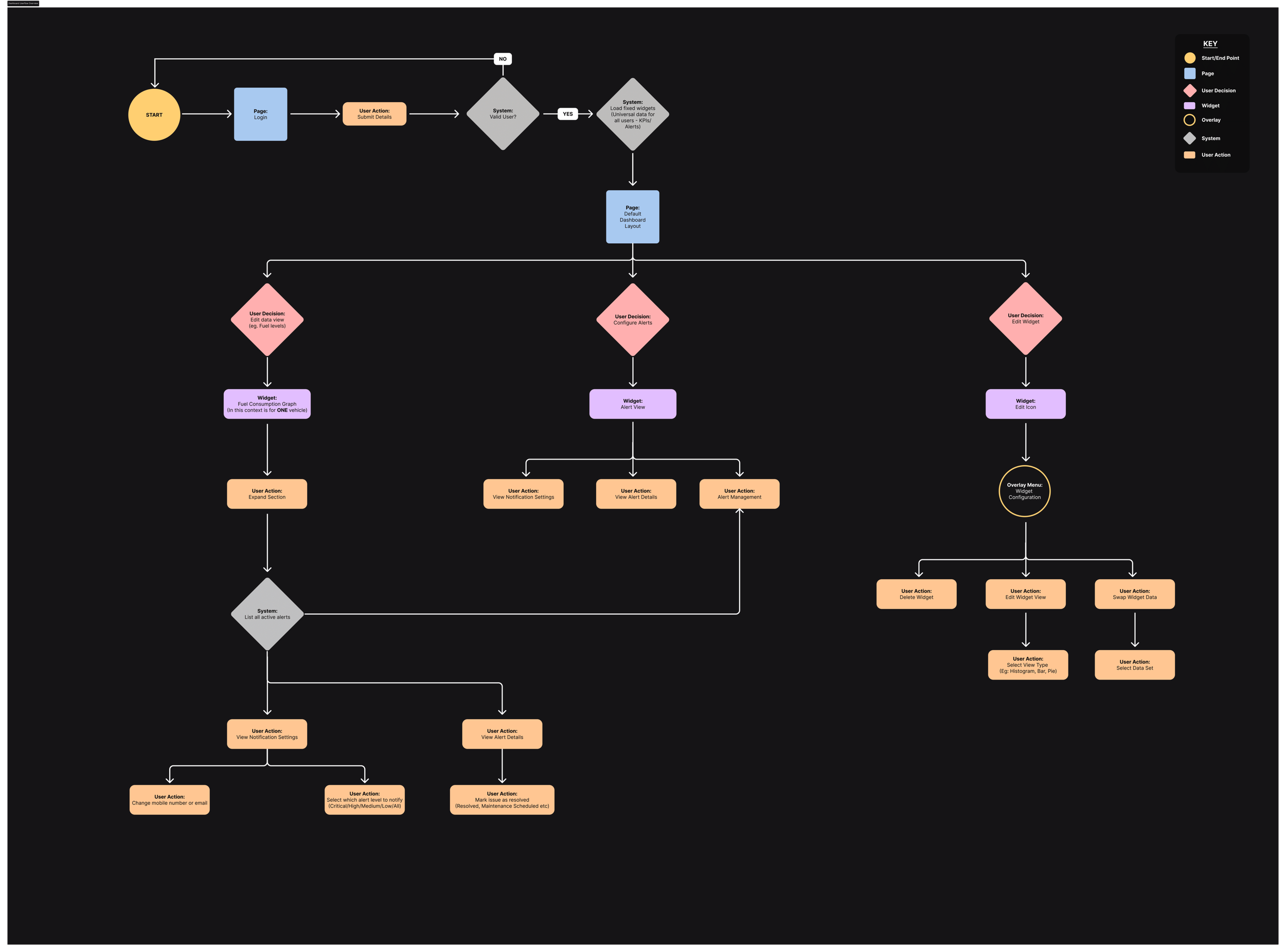 This was a hard section to navigate through. I had to understand that the strength of a dashboard is its ability to use features such as widgets to function and what provides convenience to a user, keeping in mind the brief and the key requirements a general user was constructed and further explored via task flows for more complex tasks.