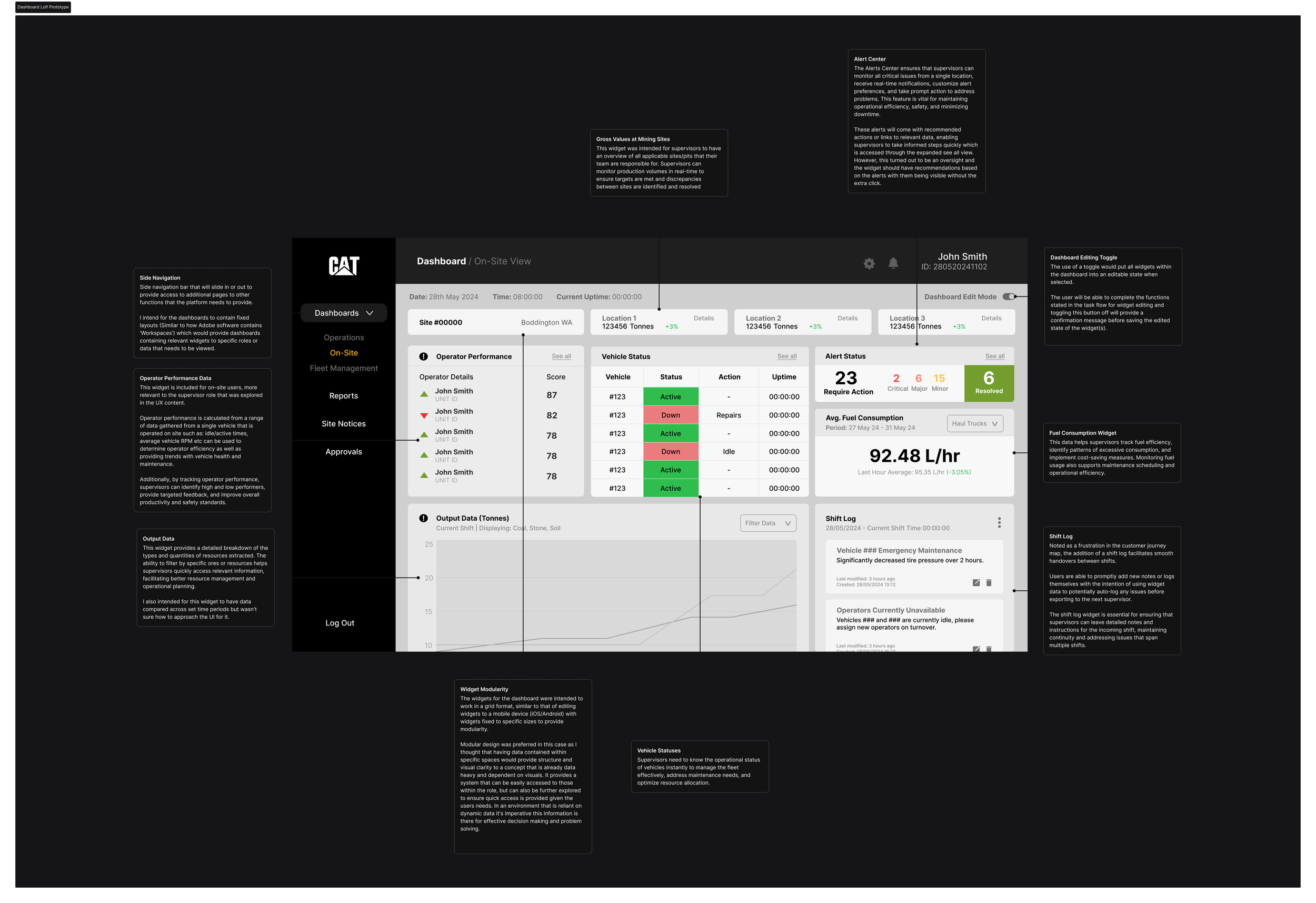 Apart of my interview process for American construction, mining, and engineering manufacturer Caterpillar (CAT) within their Brisbane HQ. This technical assessment required a low-fidelity concept of a dashboard for 'MineStar' a proprietary software integrated with their machinery.