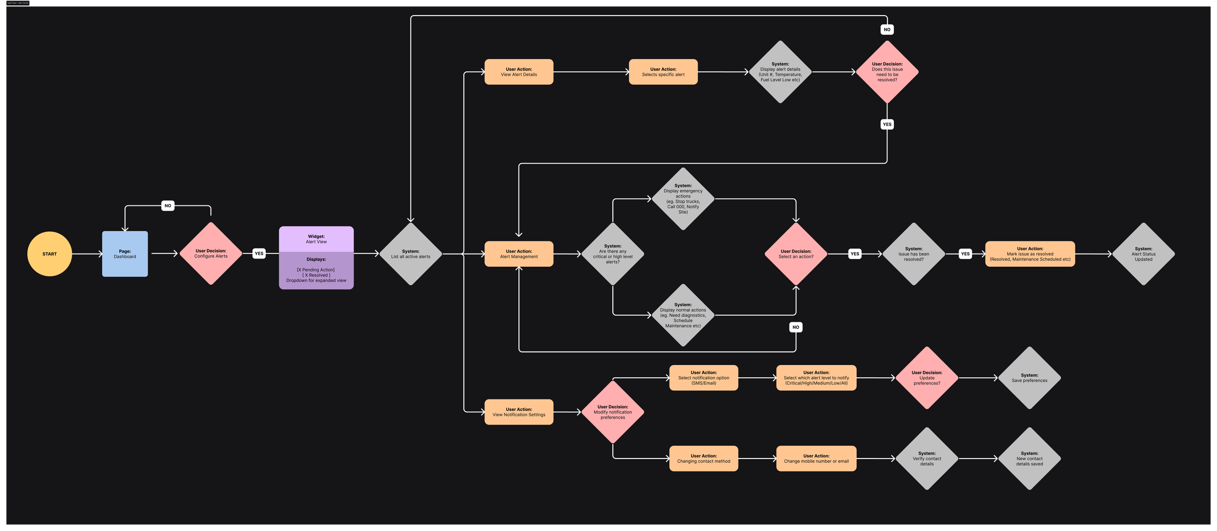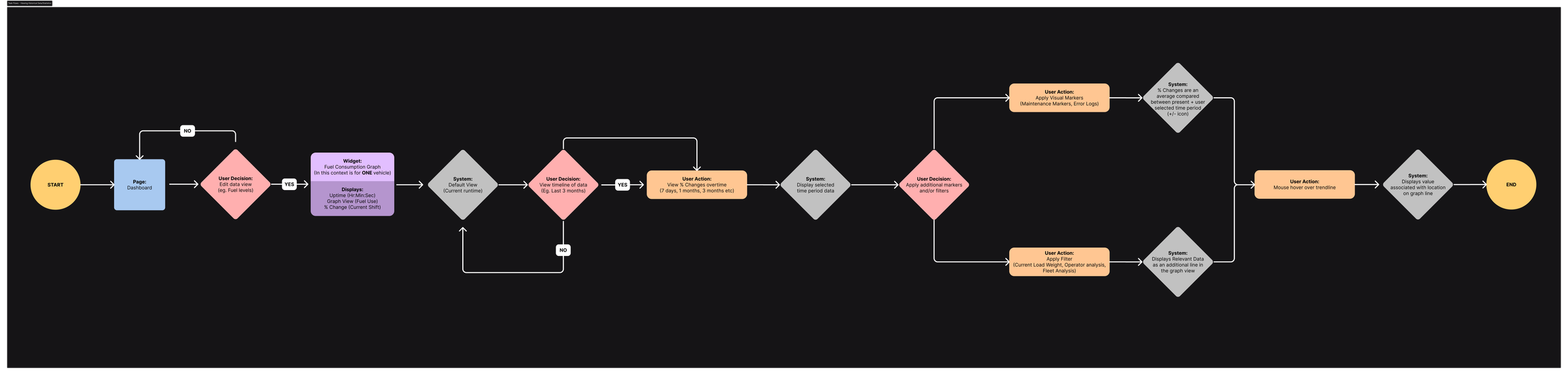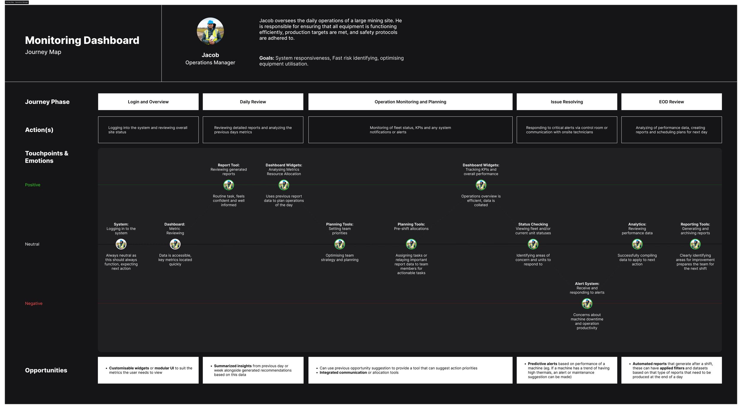 My task for this assessment was to design a user-friendly monitoring dashboard for mining equipment operators capable of visualizing real-time data and trends for mining operations. I was required to deliver several deliverables, including a journey map, user AND task flows, and an annotated low-fidelity mockup of the dashboard.
